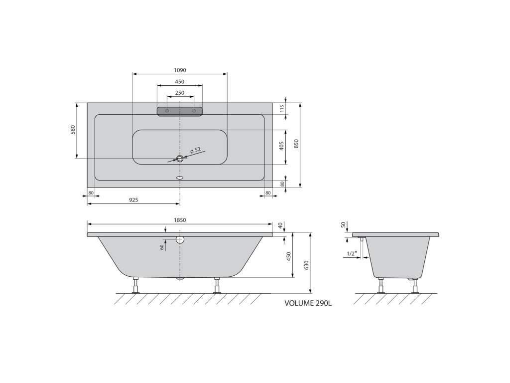 CASCATA obdélníková vana 185x85x45cm, kaskáda černá