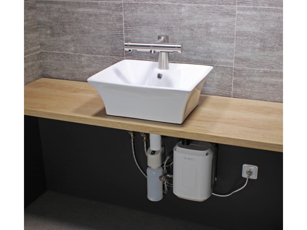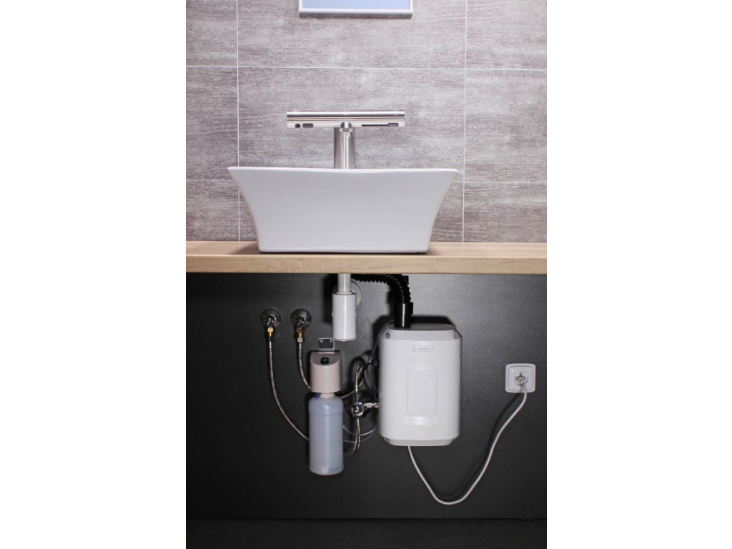 Celý systém je navržen tak, aby jeho montáž nevyžadovala stavební zásahy – jednotka s vysoušečem a dávkovačem se jednoduše umístí pod umyvadlo nebo do skříňky. Samotná baterie se montuje přímo do klasického otvoru pro baterie o velikosti ⌀35 mm.
