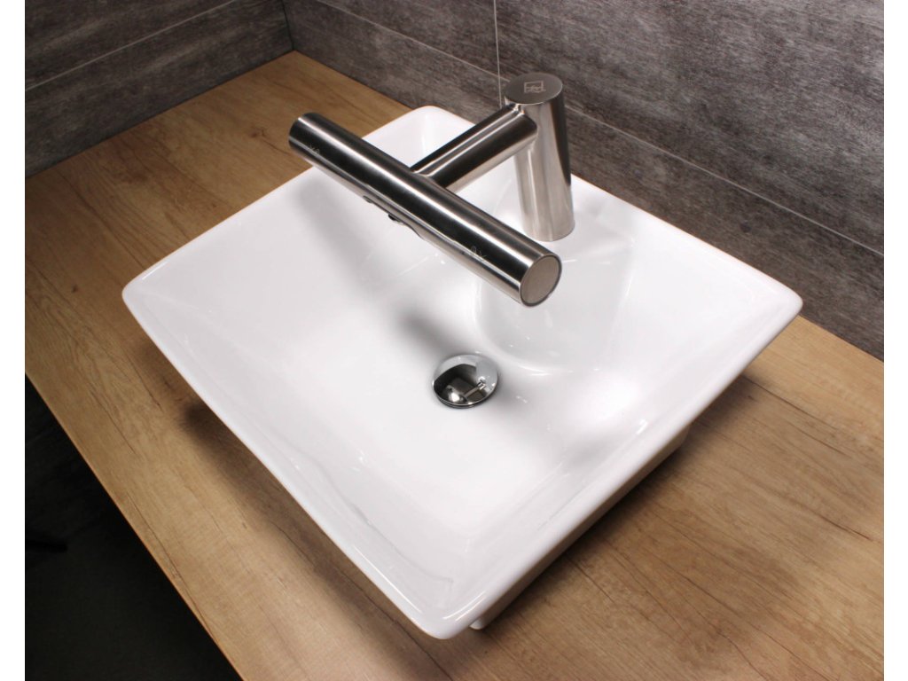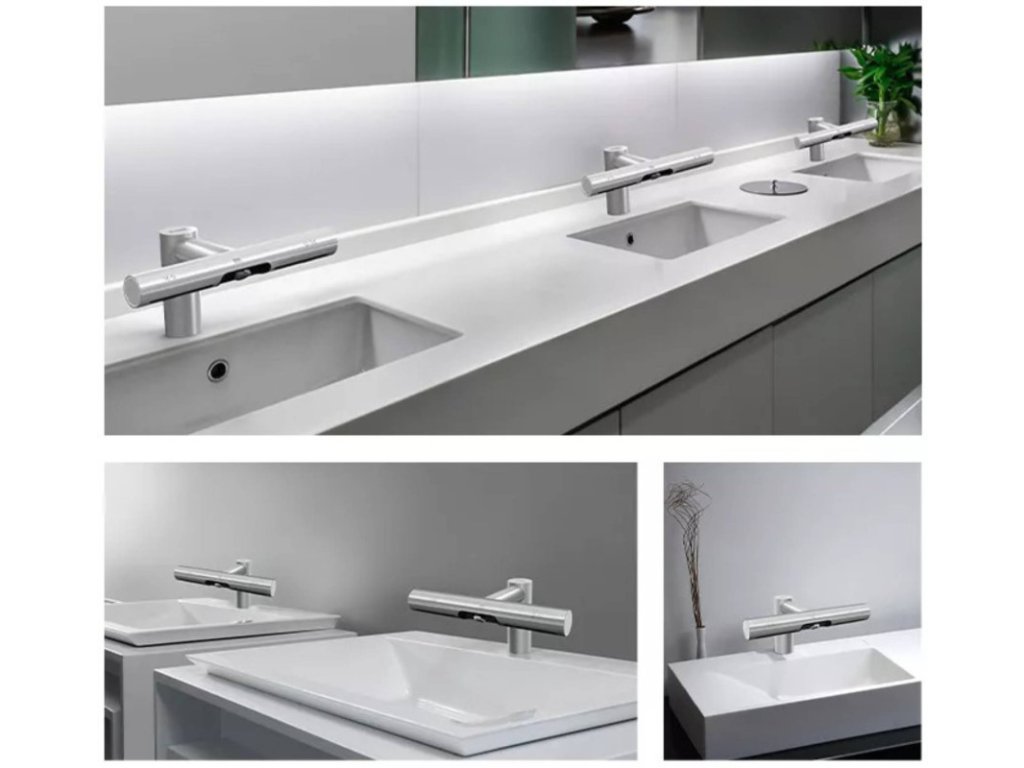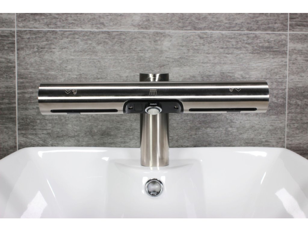 Hygienické umytí a osušení rukou nebylo nikdy jednodušší. Vložením rukou pod vodovodní baterii začne automaticky téct voda o předem nastavené teplotě. Uprostřed automatické baterie se nachází vyústění trysky vysoušeče. Spuštění je také bezkontaktní, stačí vsunout ruce a pohybovat s nimi podobně jako při mytí.