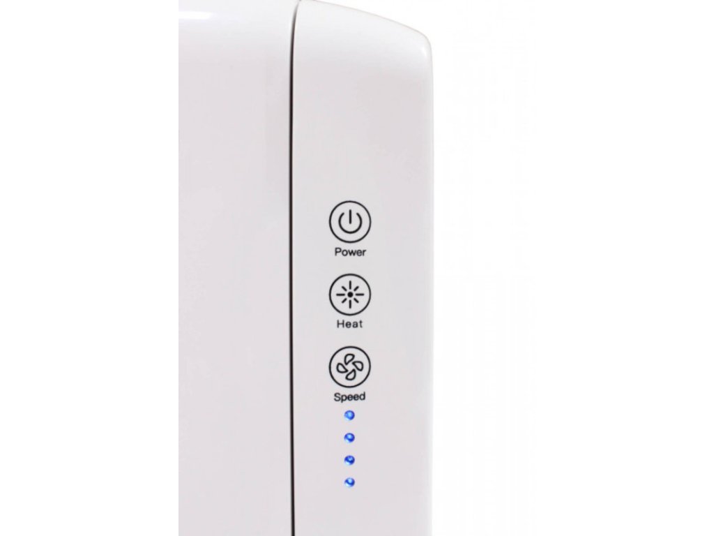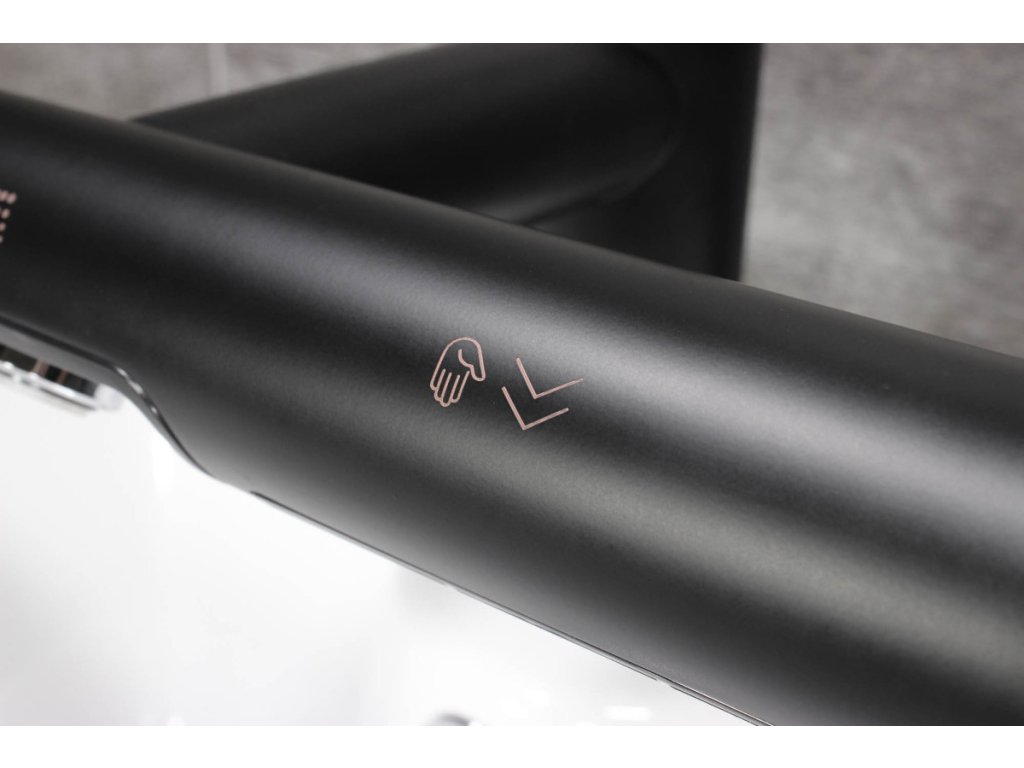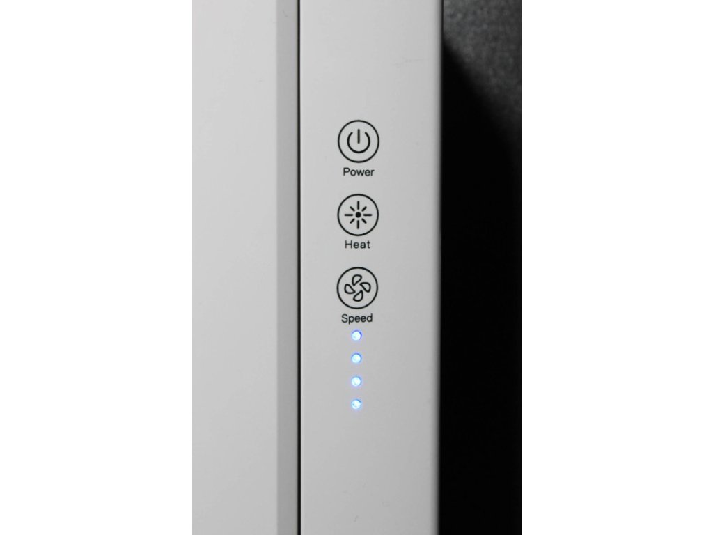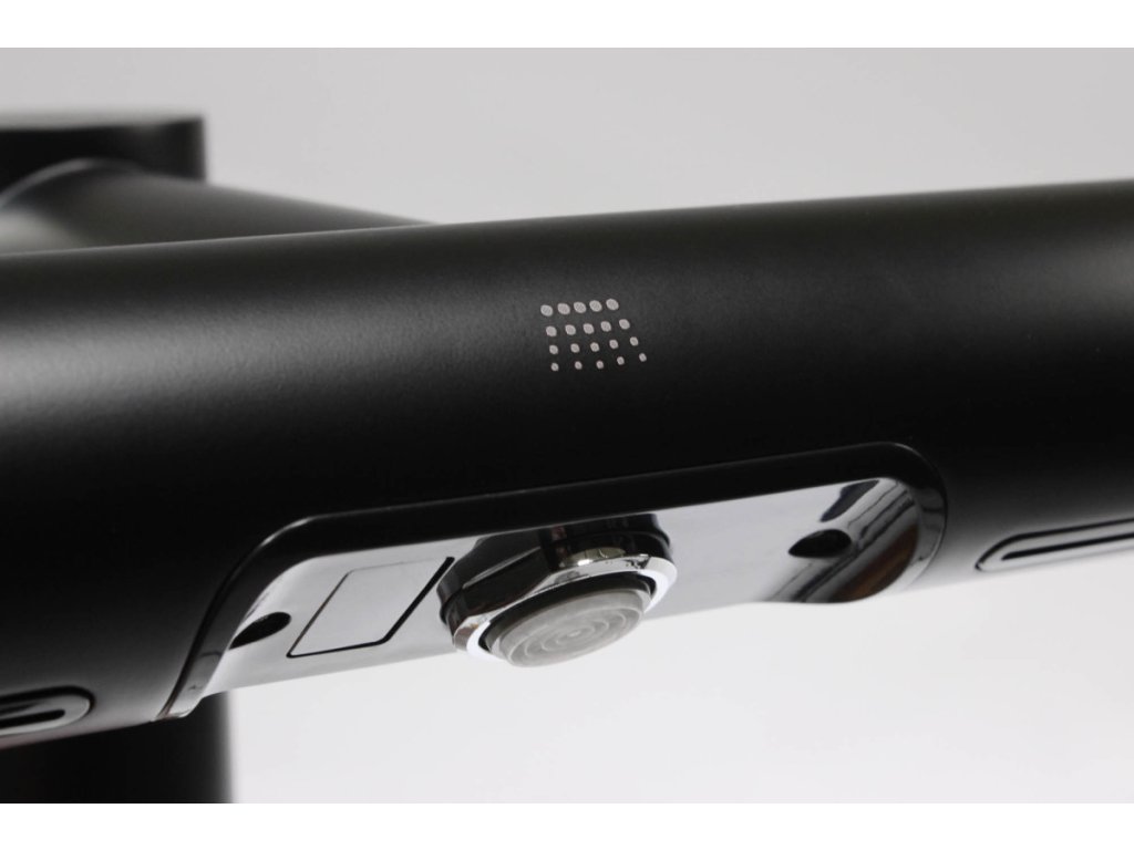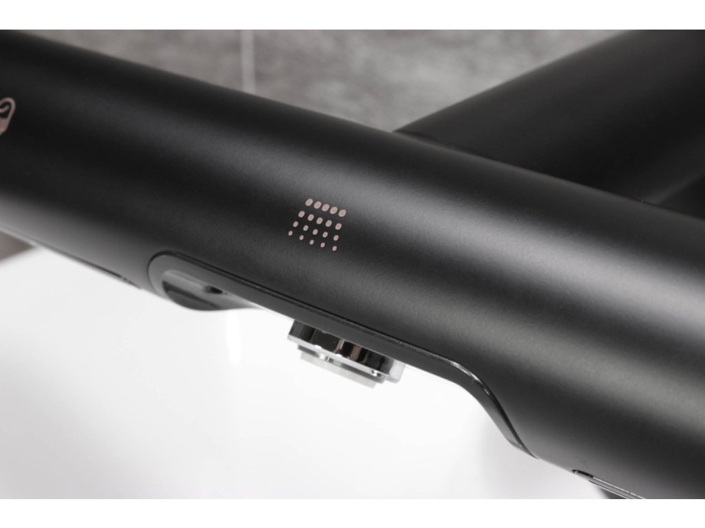 Na boční části ramen vysoušeče se nachází podsvícené led kroužky. Kroužky pulzují bílým světlem, čímž upozorňuje na funkci vysoušeče. Při používání svítí modře.