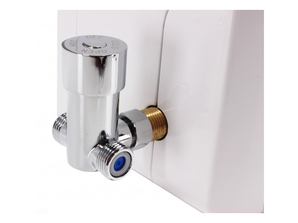 Součástí každého balení vysoušeče rukou s vodovodní baterií 2v1 je směšovací ventil umožňující nastavení příjemné teploty vody. Jet Dryer AIRTAP je rovněž možné rovnou připojit pouze na studenou vodu.