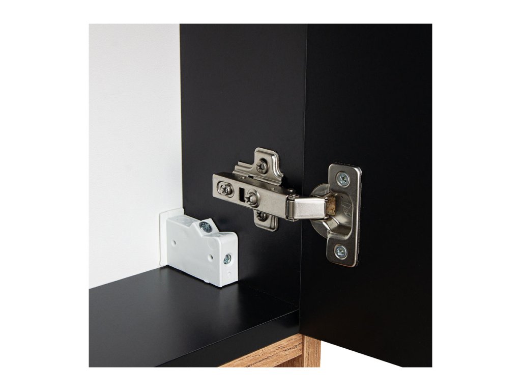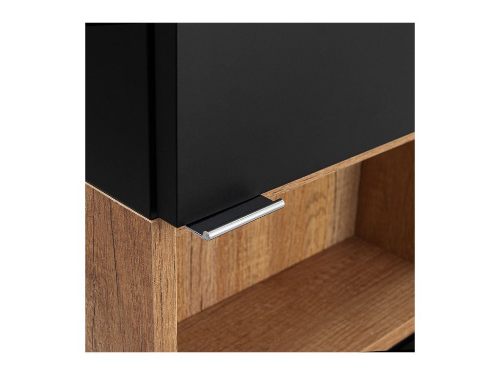 Korpus skříněk, čelní plochy a police jsou vyrobeny z LTD desky s velmi pěknou kombinací dekoru Dub Country a černých lesklých ploch.
