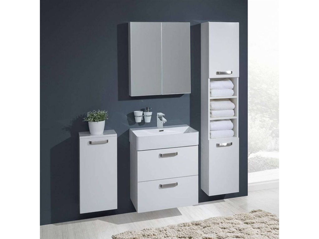 Jednoduchost, efektivnost, elegance. To jsou hlavní společné jmenovatele koupelnového nábytku, který ozdobí každou koupelnu. Tato řada koupelnového nábytku je dodávána pouze v bílé barvě a je vytvořena pro univerzální použití s elegantním a jednoduchým stylem. Šuplíky jsou vybaveny pojezdy s brzdou pro hladší dovírání. Skříňka je určená k zavěšení a je dodávána ve smontovaném stavu.