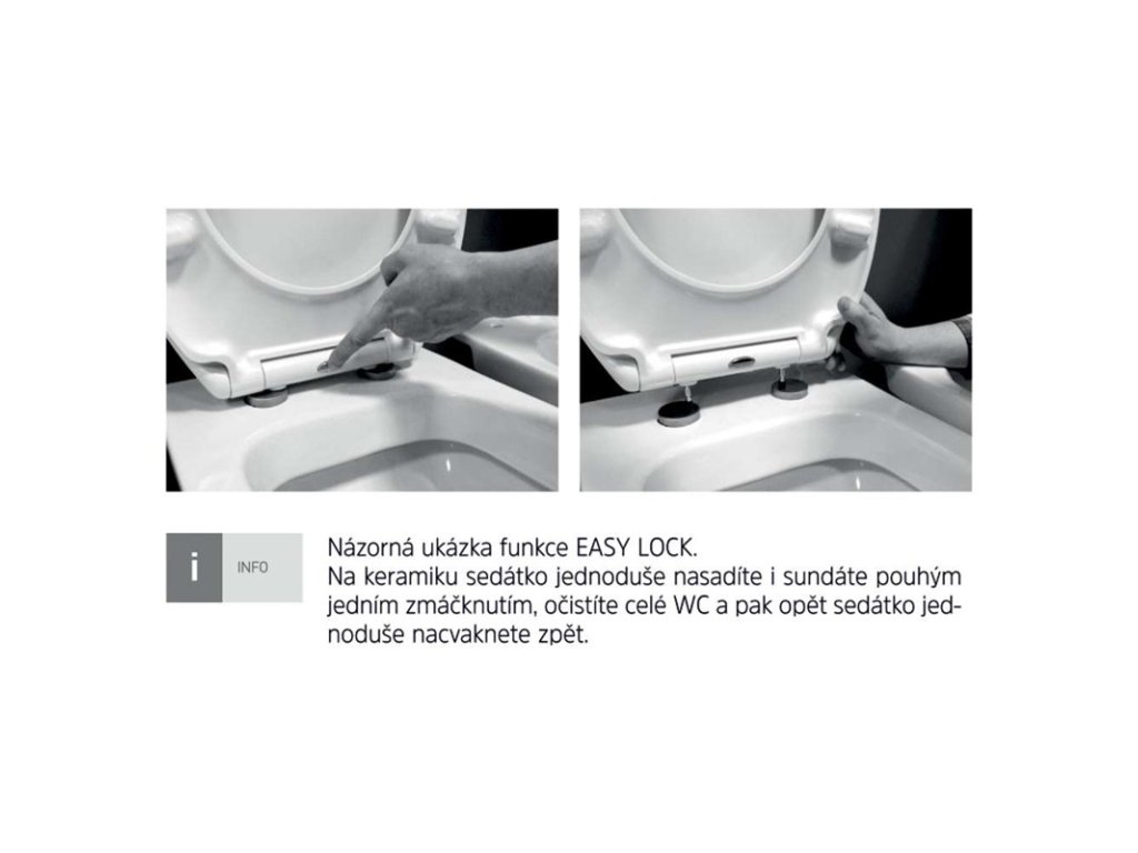 - easy lock: systém umožňující jednoduchým stlačením odejmout WC sedátko od mísy (zvyšuje úroveň hygieny toalety)