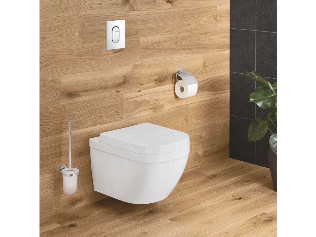 Nástěnné WC GROHE Euro Ceramic navržené s ohledem na praktičnost i styl je ideální do každé moderní koupelny. WC (jeho rozměry činí 540 × 370 mm) disponuje bezokrajovou konstrukcí a keramickou povrchovou úpravou Alpine White, která nedává šanci žádným bakteriím a nečistotám. Splachovací systém GROHE Triple Vortex pomocí tří vodních trysek vytváří tichý, výkonný a uzavřený vodní vír, který vyčistí každý kout toaletní mísy. Závěsný styl uchycení je vhodný pro maximalizaci dostupné plochy na podlaze a přispívá k jednoduššímu čištění. Objem spláchnutí je 5/3 litry a součástí dodávky WC je upevňovací sada.Ideální v kombinaci s WC sedátkem GROHE Euro Ceramic s technologií SoftClose (39330001) nebo sedátkem GROHE Euro Ceramic (39331001).