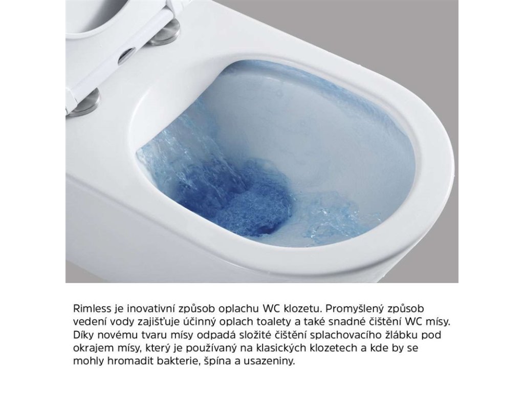 Rimless je inovativní způsob oplachu WC klozetu. Promyšlený způsob vedení vody zajišťuje účinný oplach toalety a také snadné čištění WC mísy.